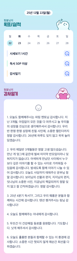 [에이스3반/독서TF 허씨허씨] 12.22 감사일기