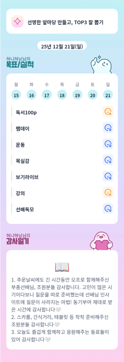 [에이스1반/독서TF 험블] 12월 22일(월) 감사일기