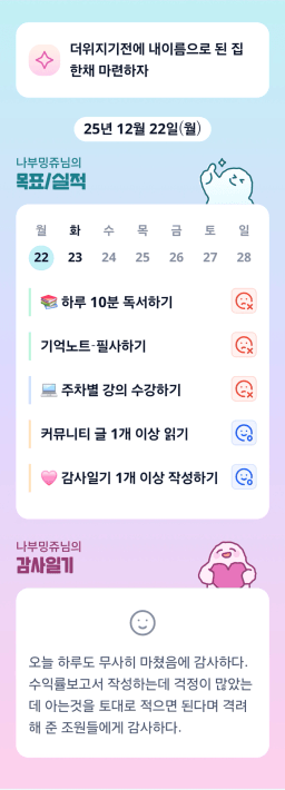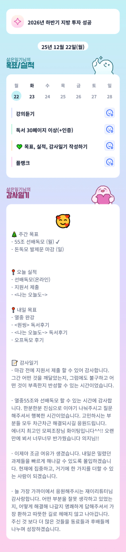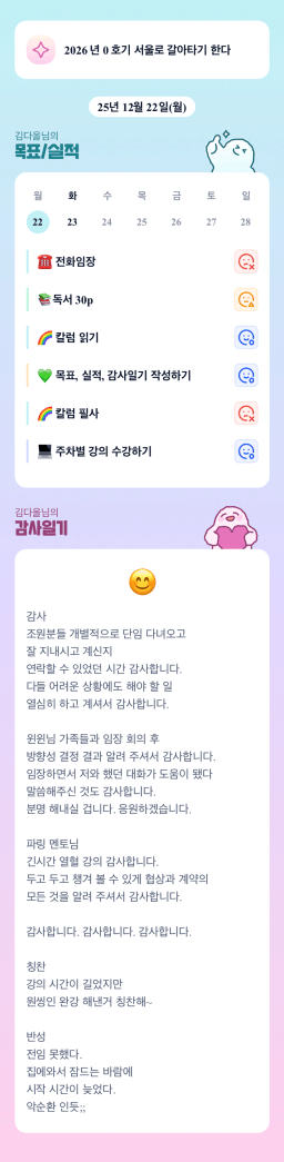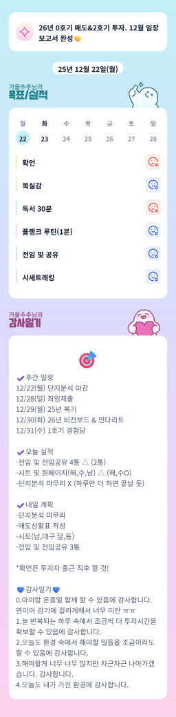 [내마실 엔젤빈쓰 튜터님과 함께하니 4주? 아니조~ 3주만에 내집마련 성공했조 김다올] 25.12.22.(월) 목실감