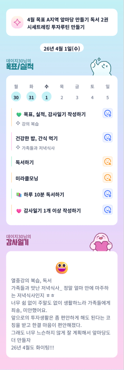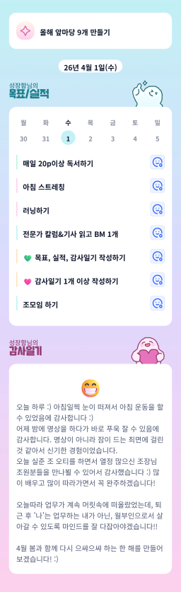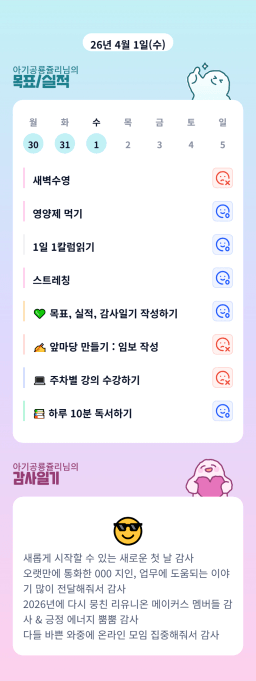 [성장함🧡] (2026.4.1.) DAY331 목표,실적,감사일기,시간가계부