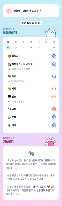 [홍드림] 12/22실적 및 12/23목표, 감사일기