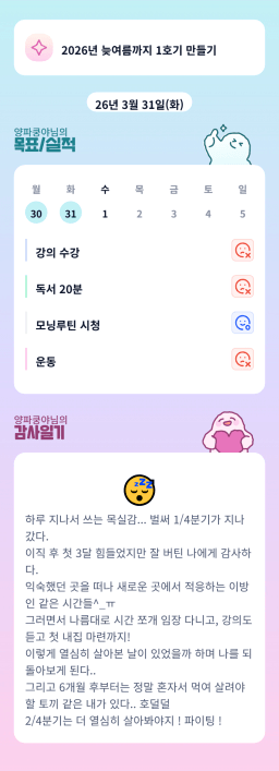[양파쿵야] 목실감 누적 91일, 연속 91일 진행중 26.03.31