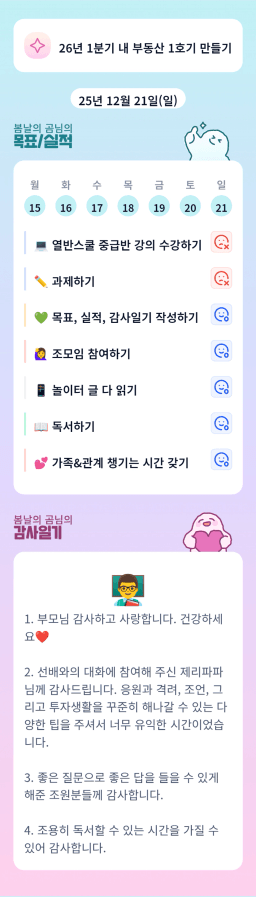 [월부학교 내게 3ㅏ랑이 뭐냐고 뭐냐고 물어본다면=센쓰🤍 욜량] 12/19~12/22 목실감 인증