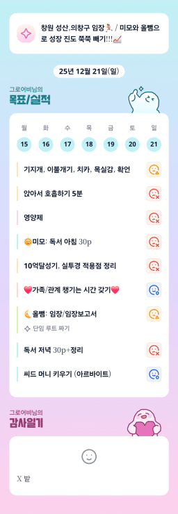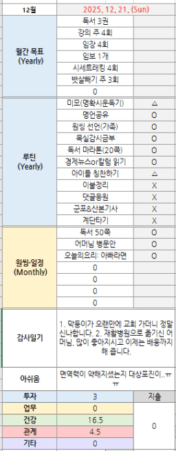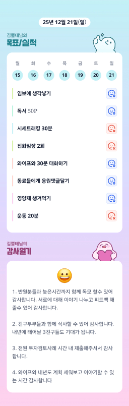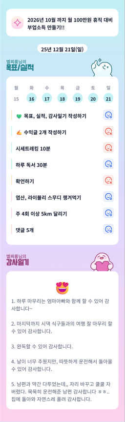 [별찌롱] 12/21 실적, 감사일기, 시간가계부 12/22 목표