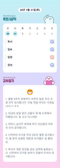 [열중49기 25조/독서TF 허씨허씨] 3. 31 감사일기