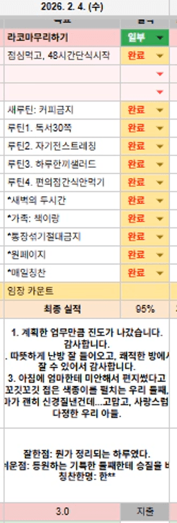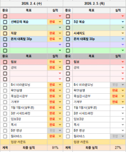 2/4 목표, 실적, 감사일기, 시간가계부 [주시부]