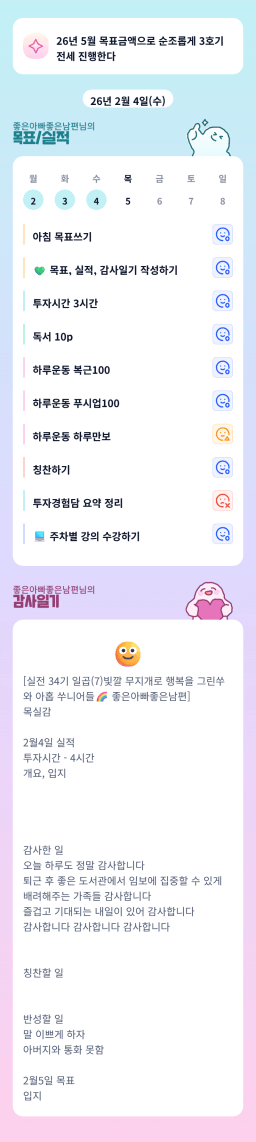 [실전 34기 🚨삐용삐용 24시간 투자 아라메르 울리조🚨 도롱이다] 목실감 - 20260204