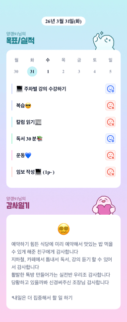 [양갱91] 3/31 목실감 누적 89일, 연속 2일 진행중