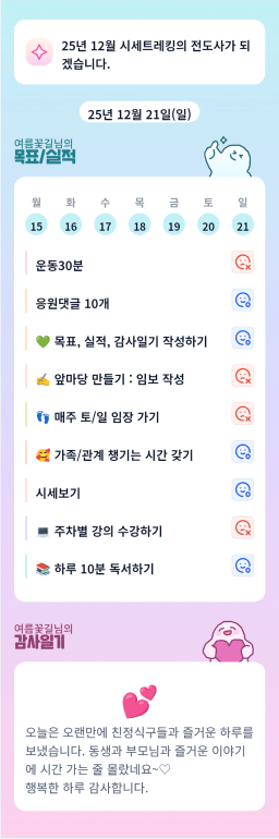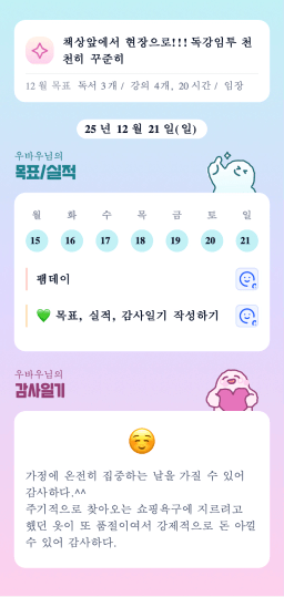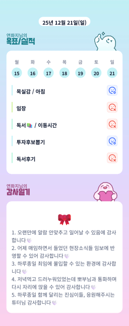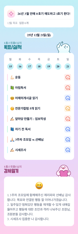 [8홈스윗홈8] 25.12.21.(일) 매일목실감 90일 인증 (51/90)