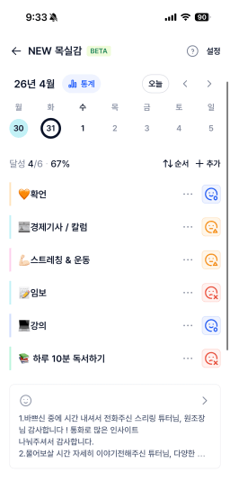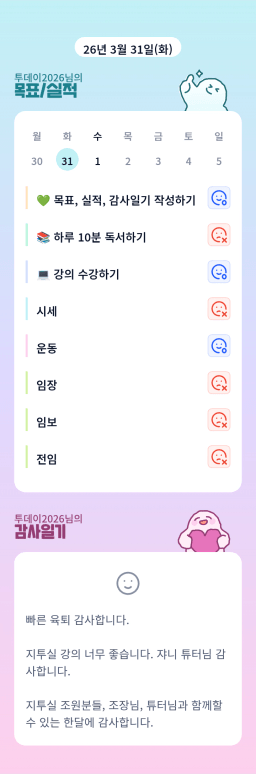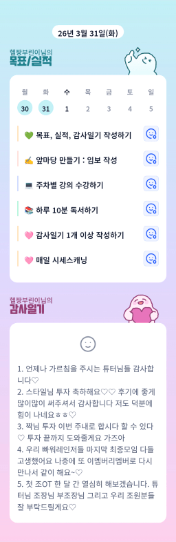 [튜핑] 목실감 누적 31일, 연속 1일 진행중