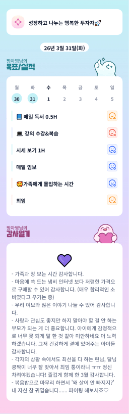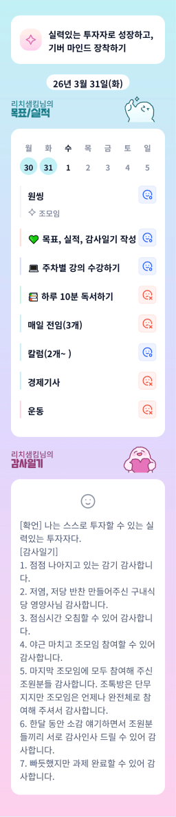 [열중 49기 2번달 투자&독서와 4랑에 빠졌조 리치샘킴] 목실감(3.31)