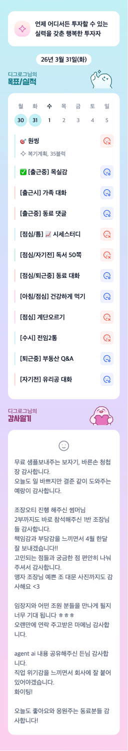 [디그로그] 3/31 목실감 누적 276일, 연속 256일 진행중