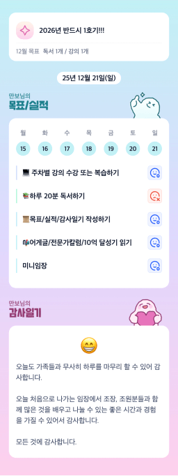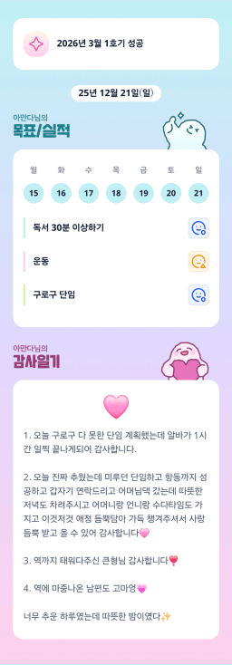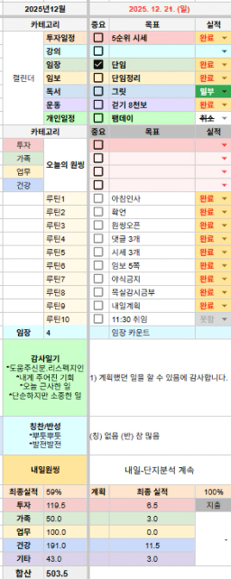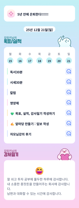 [열기89기 투자원칙대로 chilly(72)하게 안정적으로 투자하조_만보] 25.12.21 목실감