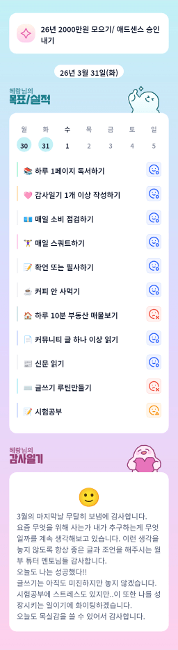 [모국어] 목실감 누적 3일, 연속 3일 진행중
