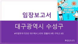 [지투기 29기 8조 대구에서 2리터 땀흘려 9채 투자하고 8조 _ 뽀곰]대구 수성구 임장보고서 1주차