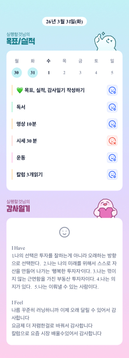 [내 꿈은 부자할머니] 목실감 누적 127일, 연속 31일 진행중