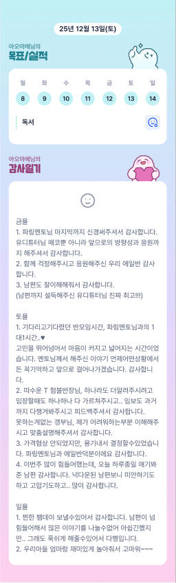 [행복한금붕이] 매일목실감 (20251213) D+235