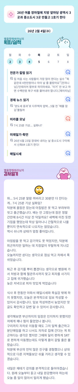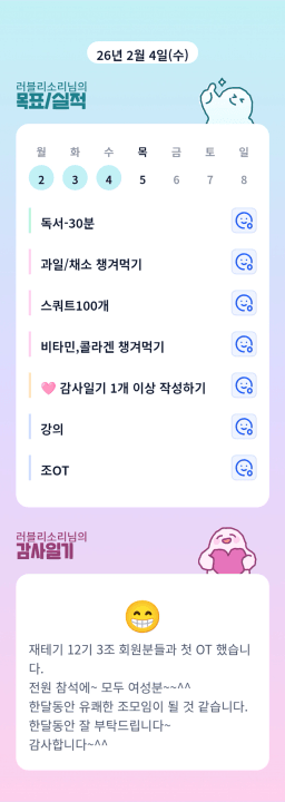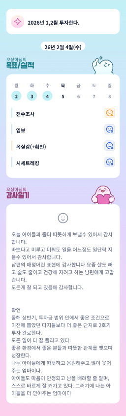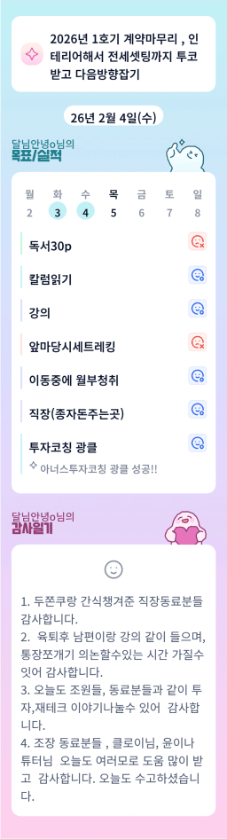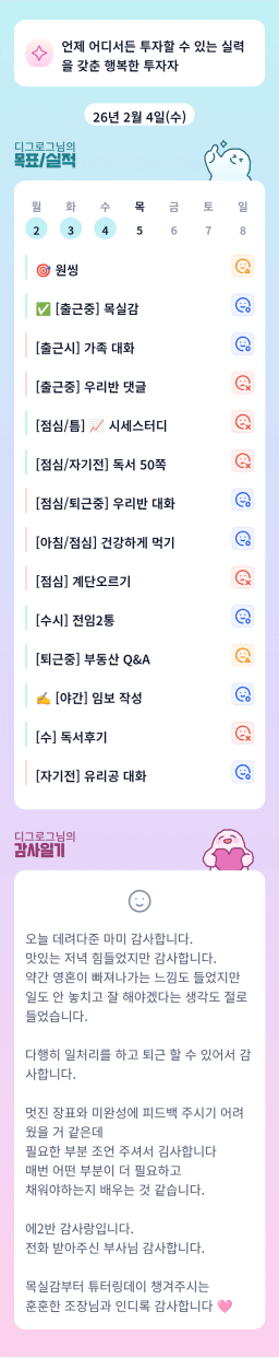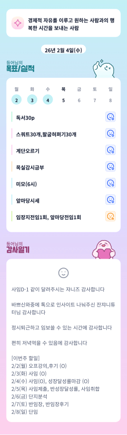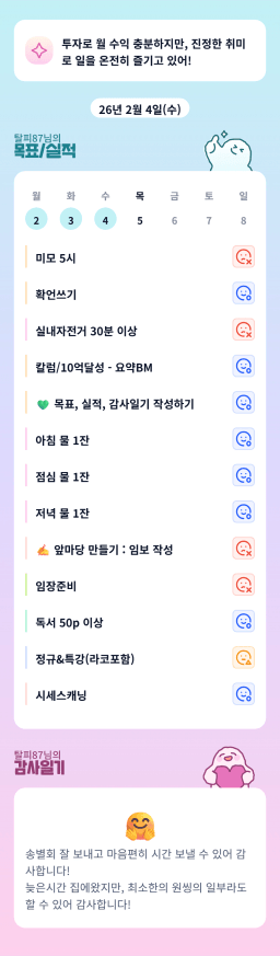 [행복한금붕이] 매일목실감 (20260204) D+285
