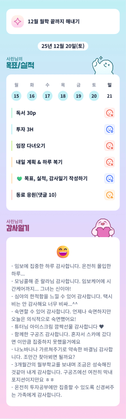 [정의] 2025년 12월 21일 목표, 실적, 감사일기
