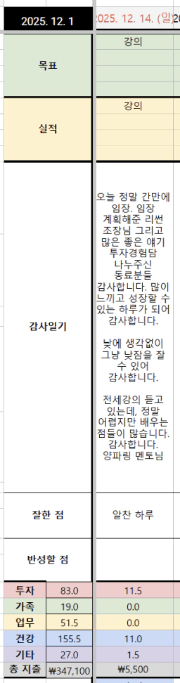 [열중 48기 아파트 4고8아 강남에 24오조 꾸준히해보자] 251214 목실감시금부
