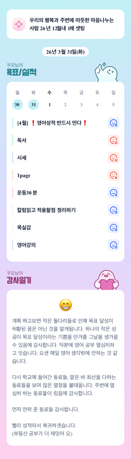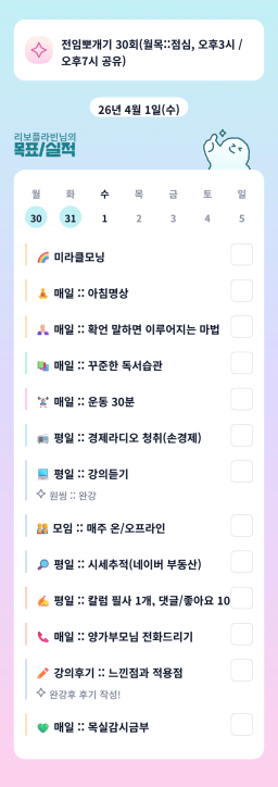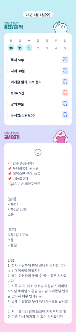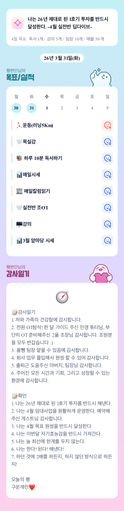 [행편인] 목실감 누적 151일, 연속 31일 진행중_260331