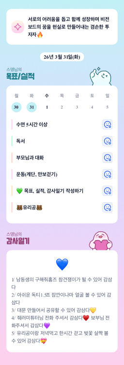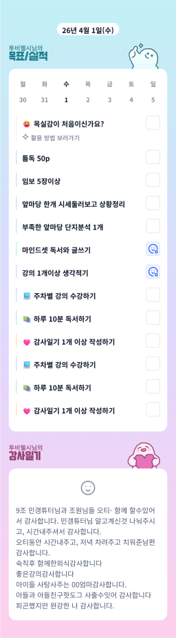 [지투28기 국송이 튜터님이 가꾼 아홉송2 꽃이 만7ㅐ했조 박곰돌1] 26-03-31 목실감