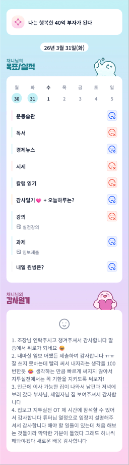 [채니] 목실감 누적 261일, 연속 234일 진행중 26.03.31