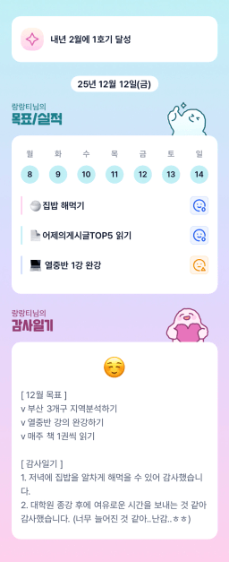 [열중 48기 2번달 독서ㄹ6 하나되 조_별을향해쏴라]#12/14 매일목실감