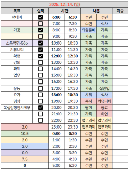 [짱이사랑맘] 12/14 목실감칭반시계부
