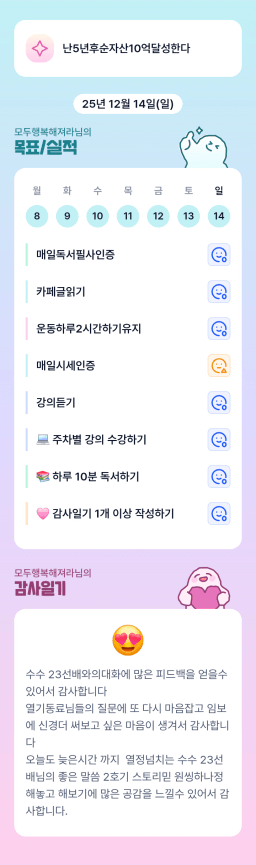 [열기89기 배움은 2배로, 자산은 7배로, 행운은 무한이조_해피부 케이트] 목실감 12/13(토) 3일차 인증