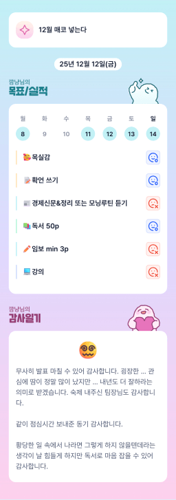 [매일목실감_깜냥] 12월12일(금)-14일(일)&15일(월) 목표