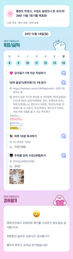[열기89기 비전보드 속 드림하우스로 24갈조♡ 재테크햄찌] 매일목실감 12.14.