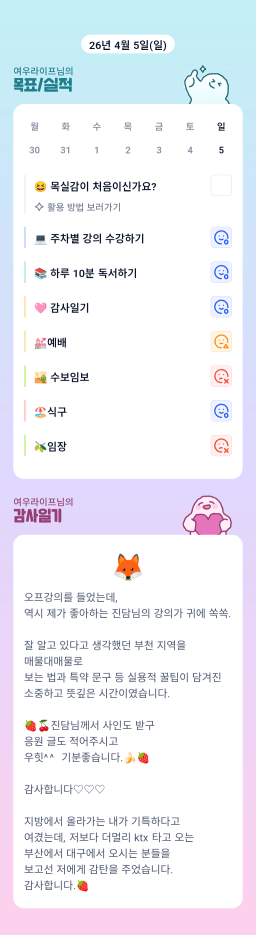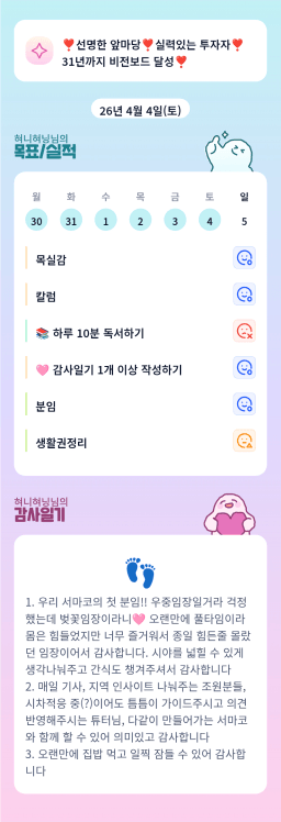 [행복한금붕이] 매일목실감 (20260405) D+346