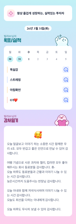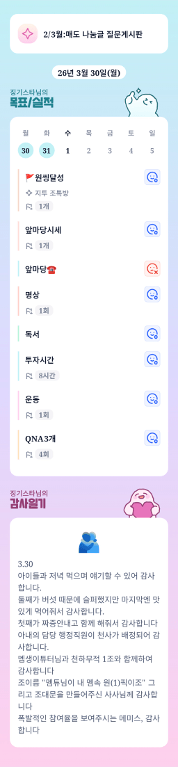3/30 잘지내죠? [징기스타] 목실감 누적 189일, 연속 90일 진행중