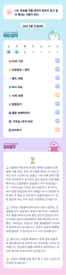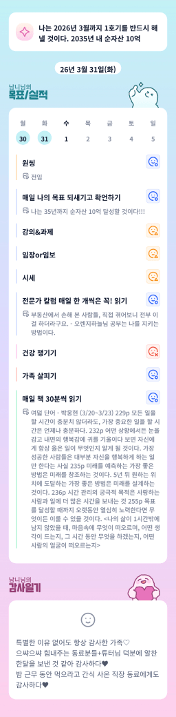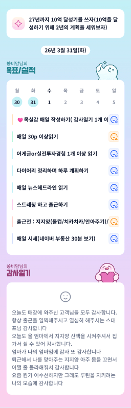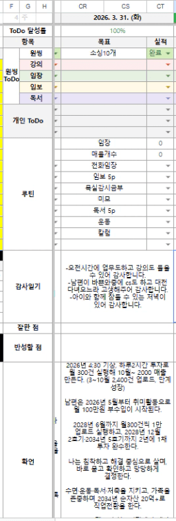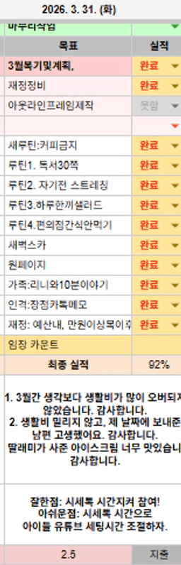 26년 4/1 목표,실적,감사일기,시간가계부[헤라클래스]