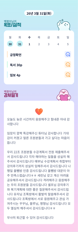 [윤진영99] 목실감 누적 168일, 연속 120일 진행중(0330~0331)