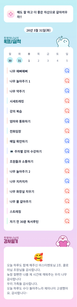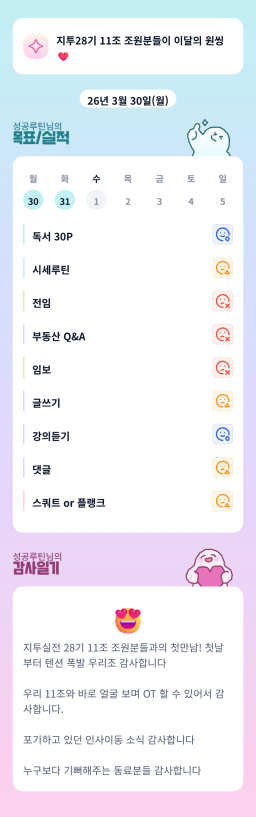 [jina찐] 목실감 누적 123일, 연속 105일 진행중 3/30-31