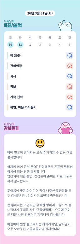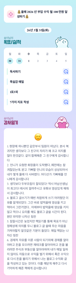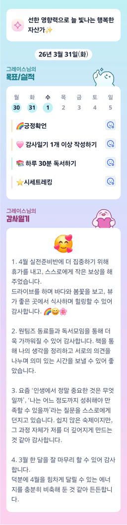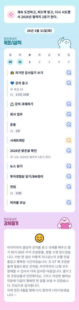 [밝은글] 목실감_한계를 넘어보자_20260331 누적 245일, 연속 243일 진행중