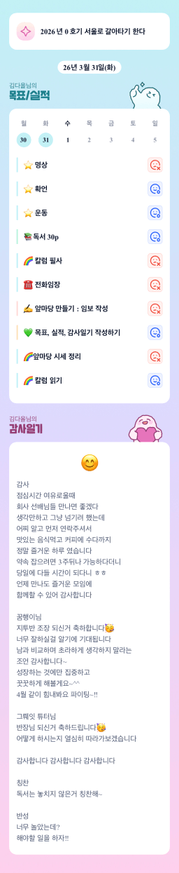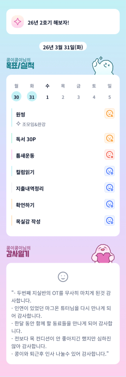[콩이콩이] 목실감 누적 238일, 연속 238일 진행중(20260331)