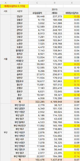 시군구 단위 세대당 수입차 등록 비율 데이터 공유 (2015~2022) [진심을담아서]