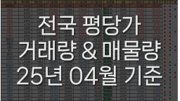 [빙바나나] 전국 시세. 25년 4월 평당가 / 거래량 & 매매,전세 매물량 (25.04.04)