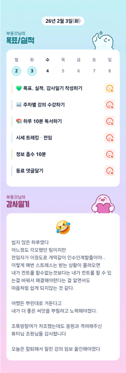 [실전34기 1타 쌤 배배튜터님과 5늘도 성장한 배생이들 쪼코파이a] 26.2.3
