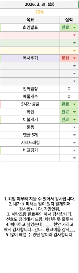 [더블샷1] 3.31일 감사일기