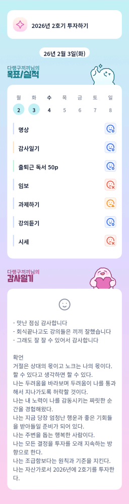 [실전34기 24시간 12개월 꾸준히 나알이 나아가조💙 끼끼] 2월 3일 목실감