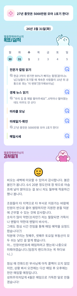 [별을향해쏴라] 목실감 누적 208일, 연속 207일 진행중