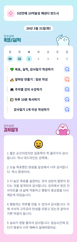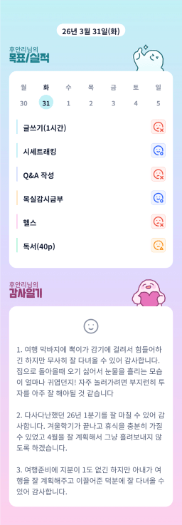 [실버썬] 3월 31일 목실감 누적 179일, 연속 11일 진행중
