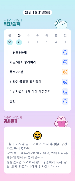[따뜻한부자b] 목실감 누적 206일, 연속 199일 진행중