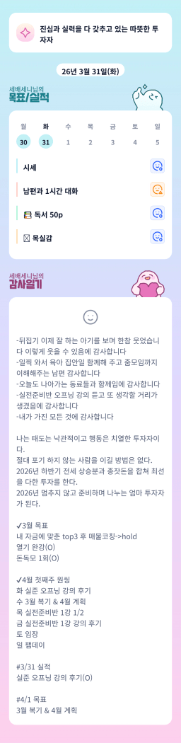 [열기 90기 5늘 이렇게 살면 집4는건 금방이조 세배세니] 3/31 목실감