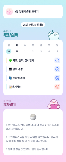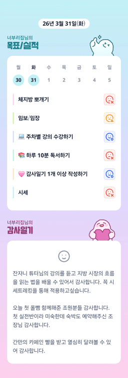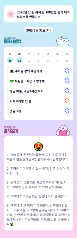 [별찌롱] 3/31 실적, 감사일기, 시간가계부 4/1 목표