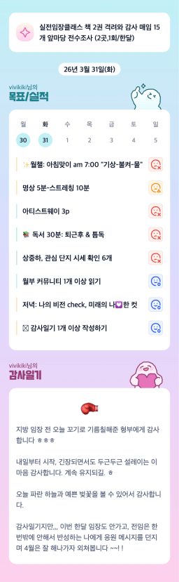 [vivikiki] 목실감 누적 227일, 연속 60일 진행중_03.31